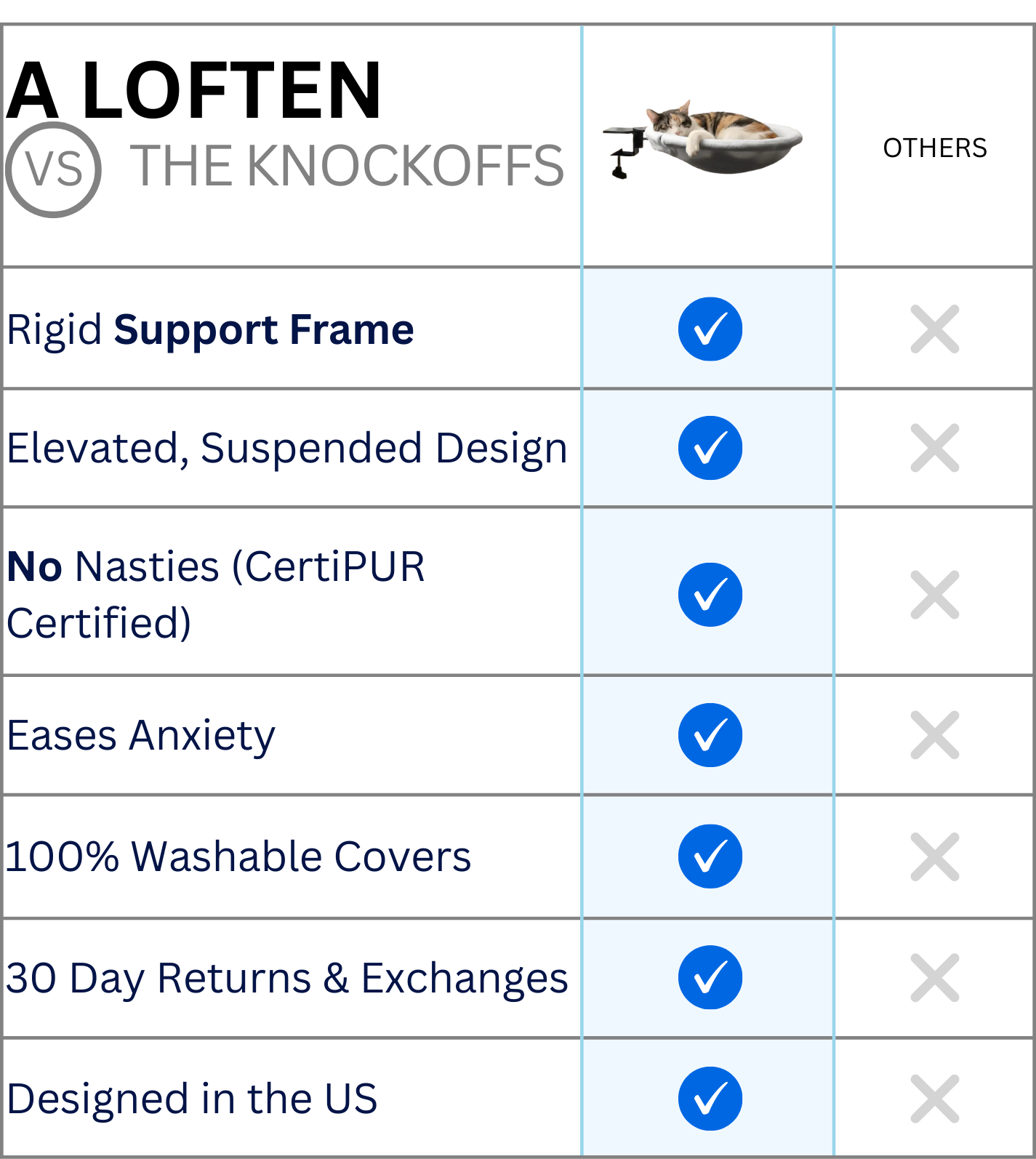 Less than 0.5% of customers return this bed, so we're pretty sure you're going to love our new and improved Loften pet hammock.
